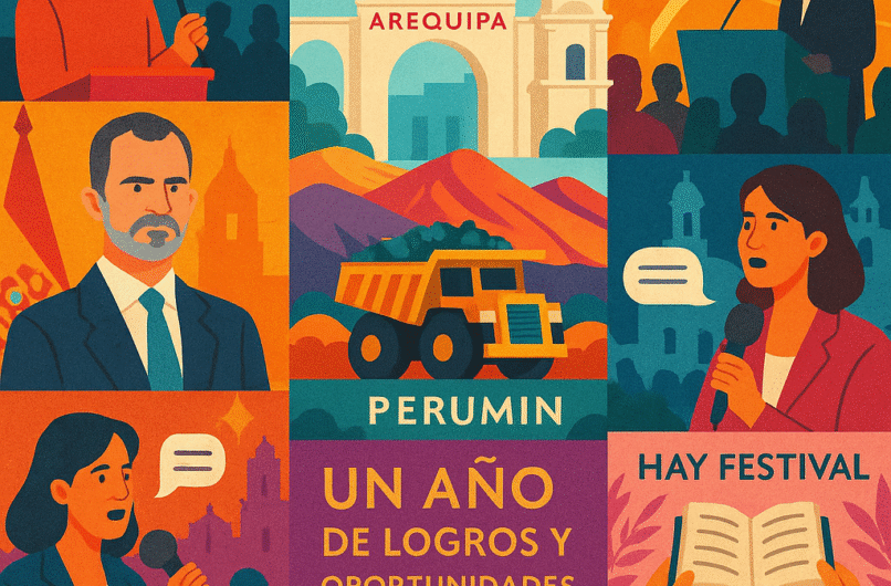 Posteriormente en octubre comenzamos con la importante visita de El Rey de España Felipe VI para participar durante la semana del “X Congreso Internacional de la Lengua Española Arequipa – Perú 2025”, evento que ayudó a posicionar a nuestra ciudad en el contexto cultural de la región. También en el mes de octubre se desarrolló el “Congreso Anual sobre la Región Arequipa – CARA 2025”, evento donde tocaron diversos temas políticos, económicos y sociales de nuestra ciudad y cerrando con un oportuno debate presidencial, con la visita de algunos candidatos donde presentaron sus diversas propuestas y sus posiciones políticas. En noviembre se desarrolló el “Hay Festival Arequipa 2025” evento que expone una gran diversidad de actividades culturales en nuestra ciudad, con la visita de expositores nacionales e internacionales impactando en el desarrollo cultural de Arequipa.